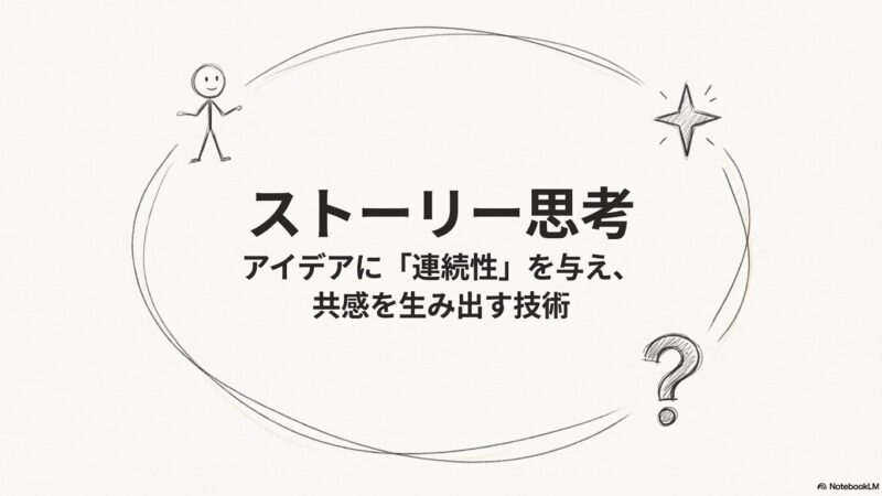 2026年3月23日 / 最終更新日時 : 2026年3月23日 大河一滴 シンキング 相手の心を動かし、アイデアを具体化する「ストーリー思考」 「素晴らしいアイデアを思いついたのに、他人にうまく魅力が伝わらない」「計画が断片的で、実際にどう運用されるかイメージが湧かない」……そんな課題を解決してくれるのが、「ストーリー思考」です。 今回は、物事の変化を物語として […]