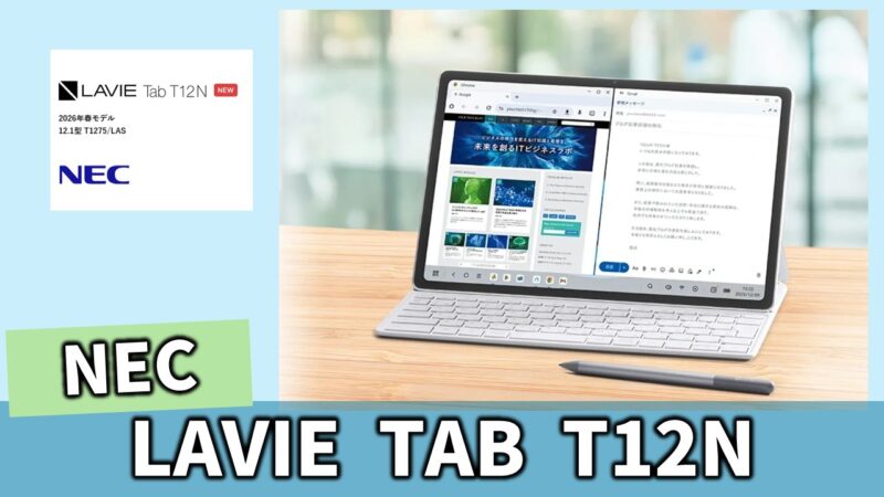 2026年3月1日 / 最終更新日時 : 2026年3月1日 大河一滴 ガジェット NEC「LAVIE Tab T12N」レビュー:キーボード標準付属の“全部入り”12.1型タブレット、その実力を検証 NECが2026年春モデルとして投入した 「LAVIE Tab T12N」 は、12.1型の大画面タブレットに、スタンドカバー付きキーボードとデジタルペンを標準で同梱した“全部入りパッケージ”が最大の売りだ。価格は 65 […]