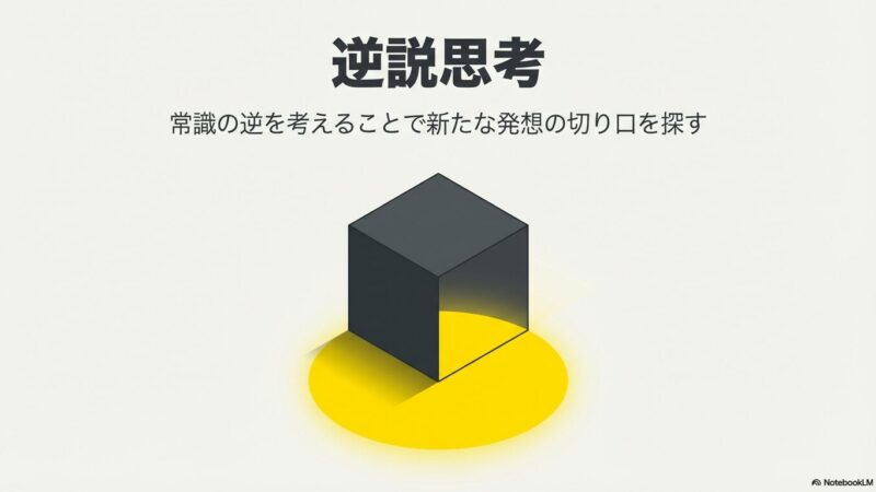 2026年3月16日 / 最終更新日時 : 2026年3月16日 大河一滴 シンキング 常識を疑え!画期的なアイデアを生む「逆説思考」のススメ 「新しい企画が思い浮かばない」「どうしてもこれまでの成功体験に縛られてしまう」……そんな行き詰まりを感じたときに試してほしいのが、「逆説思考」です。 今回は、常識の裏側を覗くことで、全く新しい発想の切り口を見つけるための […]