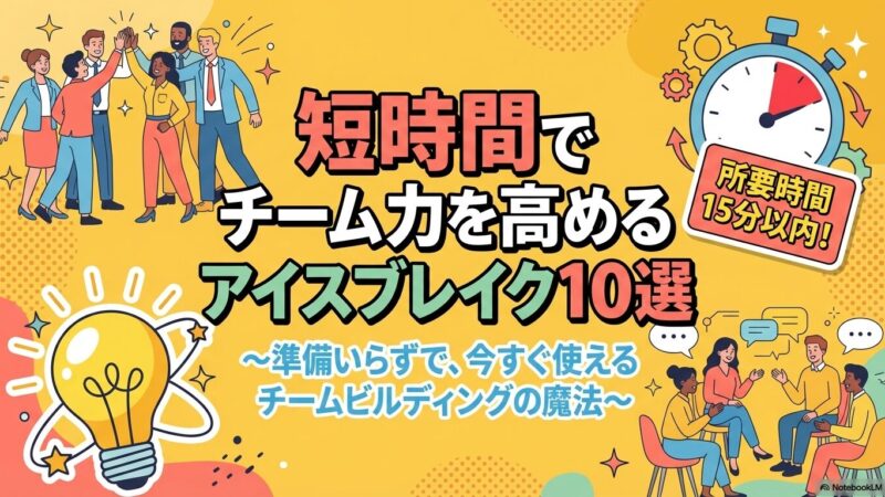 2026年4月13日 / 最終更新日時 : 2026年4月13日 大河一滴 ファシリテーション 【研修講師必読】短時間でチーム力を高めるアイスブレイク10選【チームビルディングゲーム】 忙しいマネージャーにとって、チームビルディングに何時間もかける余裕はありません。しかし、15分以内で完了し、身近な道具で実行できるゲームを活用することによって、チームを醸成し、仲間意識を高める大きな成果が得られます。そこ […]