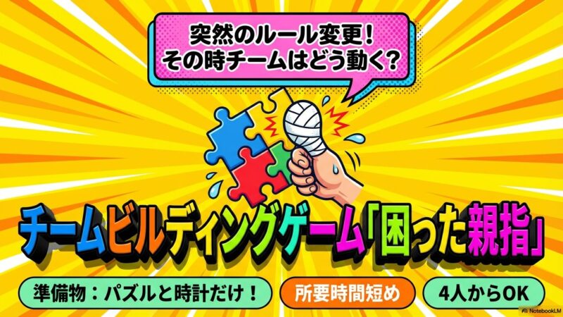 2026年4月5日 / 最終更新日時 : 2026年4月5日 大河一滴 ファシリテーション 変化への抵抗を乗り越える!チームビルディングゲーム「困った親指」 仕事の進め方が突然変わったとき、チーム内に「なぜこんな面倒なことをしなきゃいけないんだ」という不満や抵抗が生まれることはありませんか? 今回は、パズルのルールが途中で変更される体験を通じて、「変化には理由があること」を学 […]