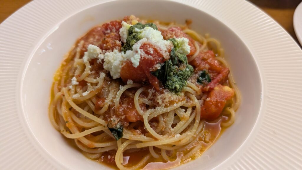 フレッシュトマト・クリームチーズとバジルのパスタ
