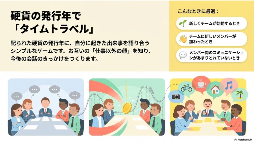 チームビルディングゲーム「硬貨が導くストーリー」:1枚の小銭から始まる自己紹介