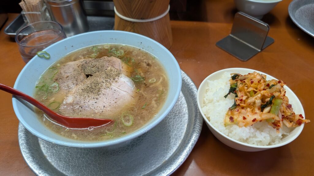 スープの濃厚さと胡椒の刺激は、ご飯との相性が抜群。チャーシューをおかずにご飯を頬張り、そこにラーメンのスープをすすれば、シンプルながら満足度の高い食事になる。