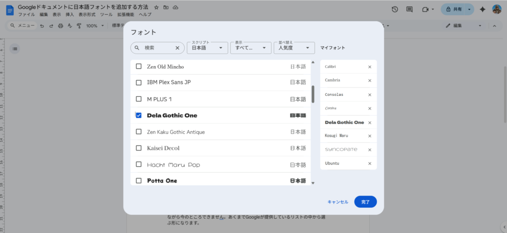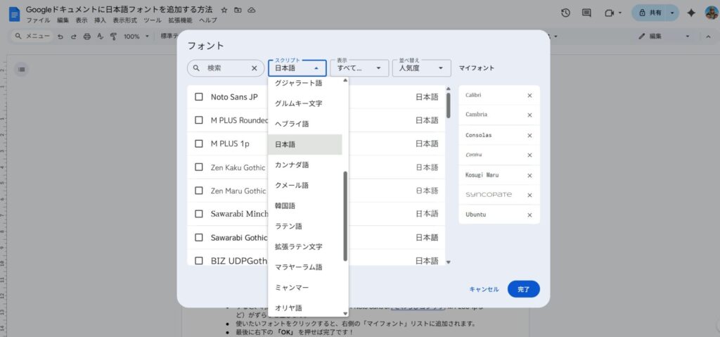 【簡単図解】グーグルドキュメントに日本語フォントを追加する方法