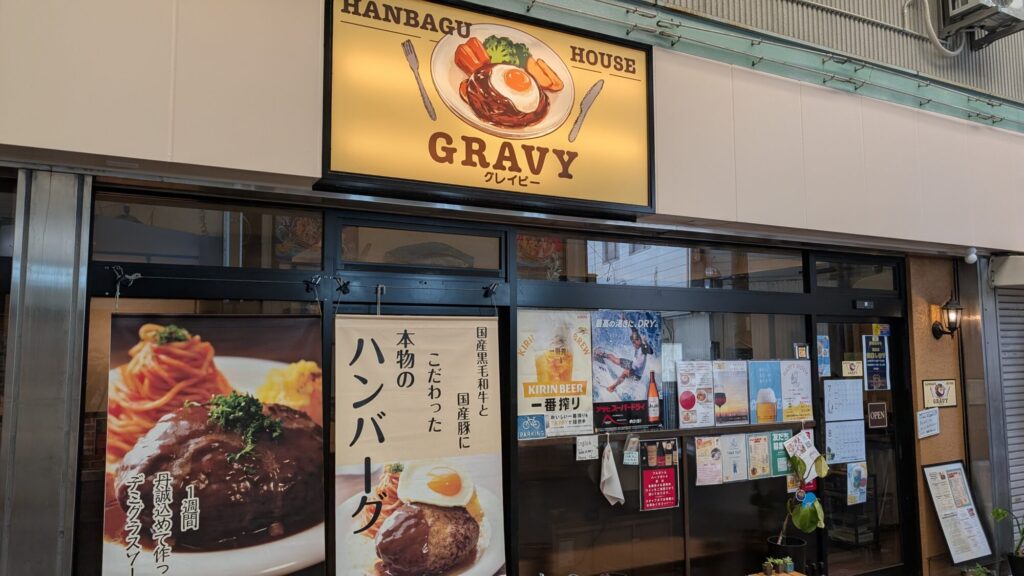 大阪メトロ谷町線・都島駅。駅前の喧騒を一歩離れ、桜通商店街を少し進んだ先に、ハンバーグ好きなら一度は足を運びたい一軒がある。それが 「ハンバーグハウス グレイビー(HANBAGU HOUSE GRAVY)」だ。