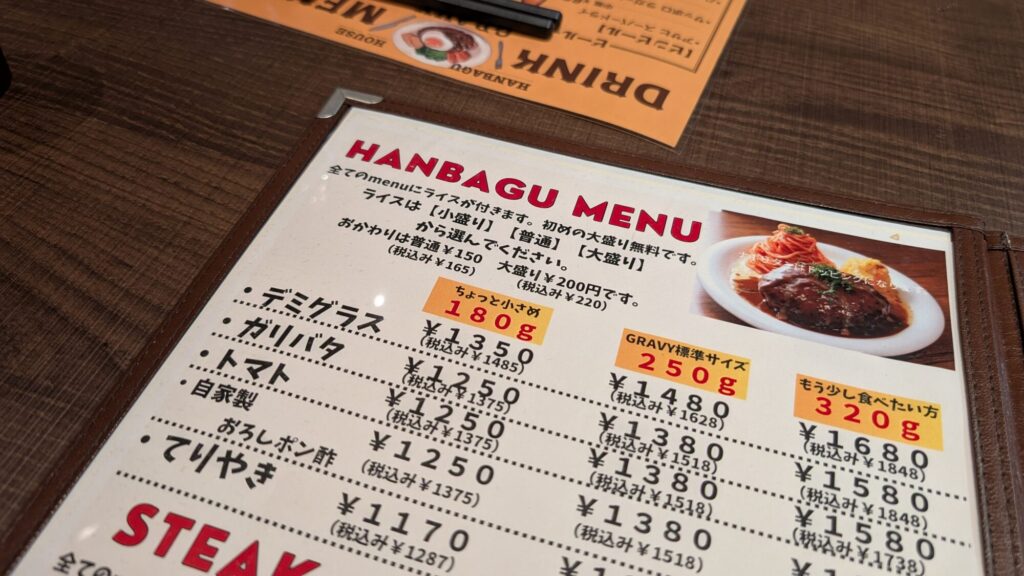 食べログでは「250gでも満腹」「300g超に挑戦する人も多い」といった声も見られ、ガッツリ派にも支持されている。