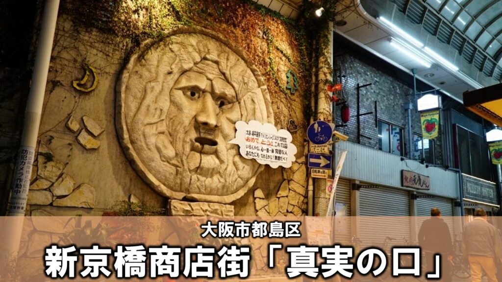■ 新京橋商店街の名物スポット「真実の口」が目印