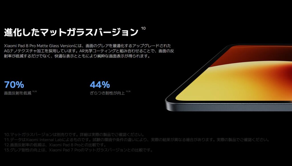 かつてタブレットといえば、発色の良さを重視した「光沢(グレア)画面」が当たり前でした。しかし、屋外での使用や長時間のテレワークが増えた現在、ユーザーの視線は「非光沢(アンチグレア/マット)」へと注がれています。特に最新の「マットガラス」技術は、従来のフィルム貼り付けでは成し得なかった「高画質と低反射の両立」を実現しています。