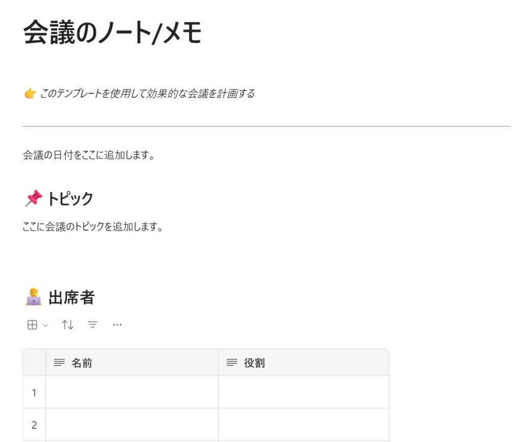 会議メモは、議論の流れや決定事項をその場で整理できる便利な使い方です。