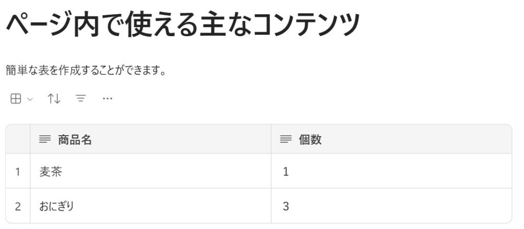 表を選択すれば、すぐにページ内に表が作成されます。データ整理や比較に使うとよいでしょう。 Excel ほど複雑な表は作れませんが、軽い管理には十分です。