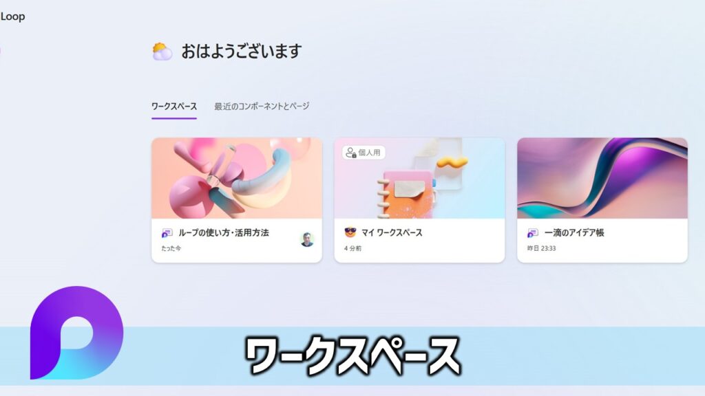 ワークスペースは、Loop の最上位にある「入れ物」です。いわばプロジェクトの全体を収納する「家」みたいなものです。