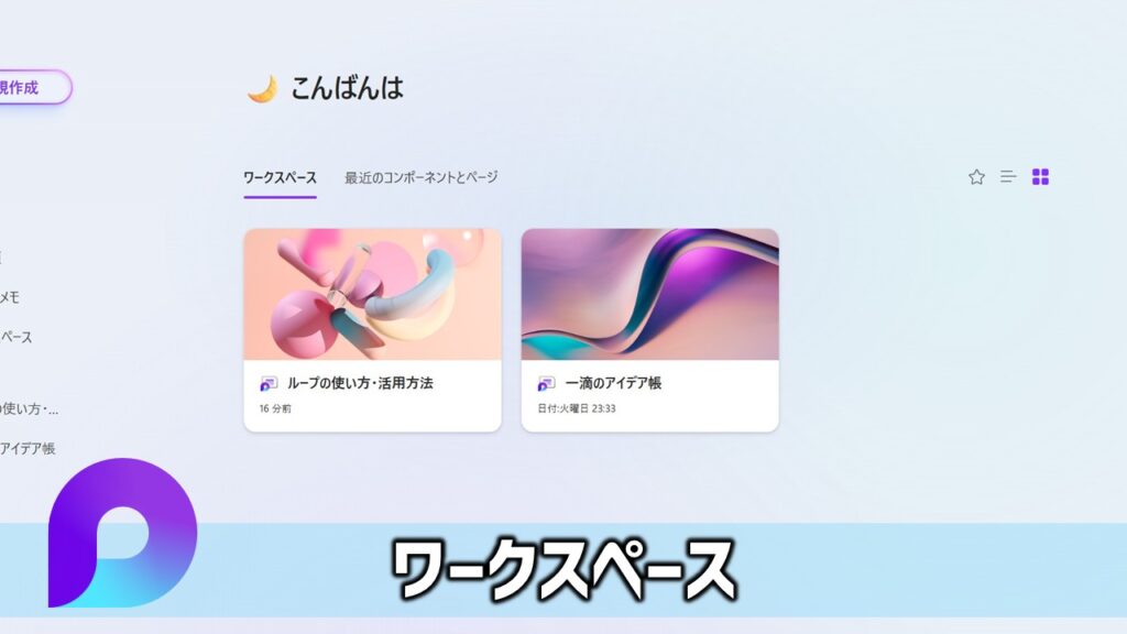 ワークスペースは、Loop の最上位にある「入れ物」です。いわばプロジェクトの全体を収納する「家」みたいなものです。