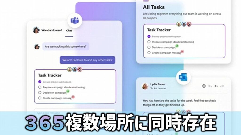 コンポーネントは、Loop ページの中だけに閉じた存在ではありません。 Teams、Outlook、Copilot Chat など、Microsoft 365 の複数の場所に同時に存在できます。