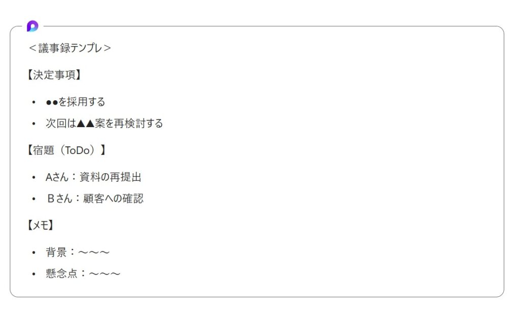■ 議事録での使い方:迷わない“3ブロック構成”
