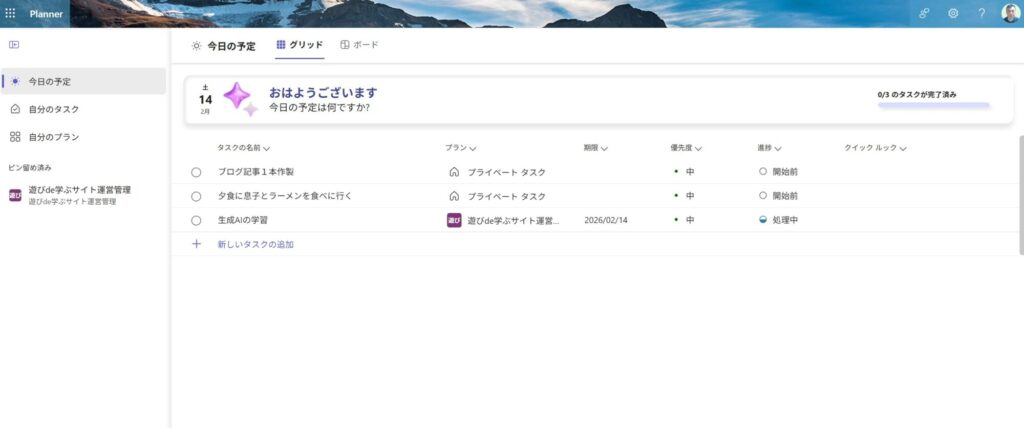 法人アカウントの「To Do」に入力したタスクは「Planner」に「プライベートタスク」として同期されます。