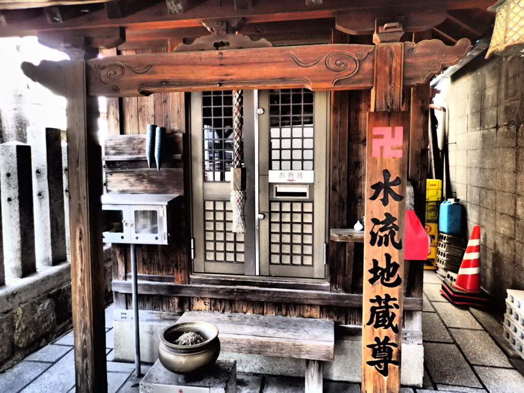 鳥居のそばに佇む 「野江水流地蔵尊」 は、この明治の洪水で流れ着いたものとされ、後に大阪市都市景観資源にも登録されています。水害の記憶を今に伝える、貴重な存在です。