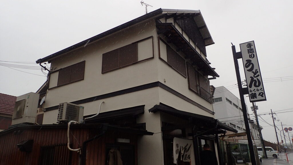 大阪・交野市。決して交通至便とは言い難い住宅地にありながら、営業日ともなれば必ず行列ができる――そんな一軒がある。「手造りうどん 楽々(らくらく)」。