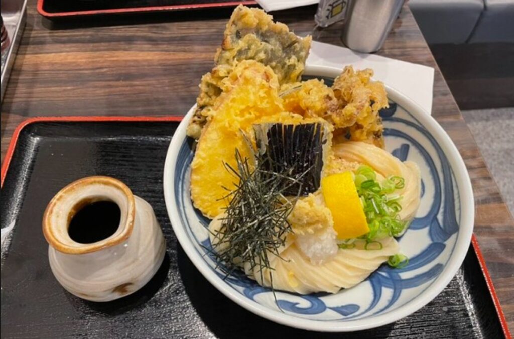 真打時代より大きく進化したのが“ぶっかけ系”のメニューだ。温・冷どちらも揃い、野菜天盛などの豪華なメニューも人気を集めている。ナス、かぼちゃ、舞茸などの天ぷらは軽やかに揚がり、うどんの味わいをさらに引き立てる。