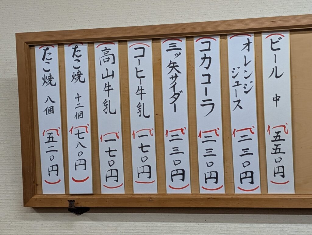 うまい屋のフードメニューは、なんと「たこ焼き」のみ。