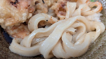 特に冷たいぶっかけは、ぎゅっと締まった麺のコシがダイレクトに楽しめます。平打ち麺のむちむち感が際立ち、天ぷらとの相性も抜群です。