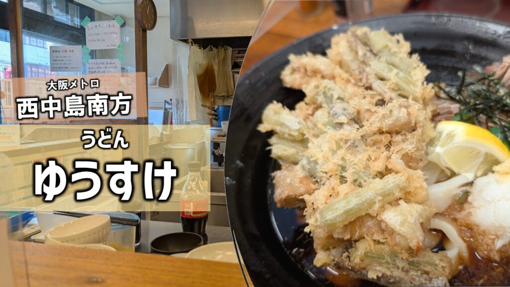 阪急京都線・南方駅から徒歩わずか2分。電車の車窓からも姿が見えるうどん店「ゆうすけ」は、西中島南方エリアで圧倒的な人気を誇るうどんの名店です。開店前から並びができることも珍しくないほどで、うどん好きなら一度は訪れたい一軒です。