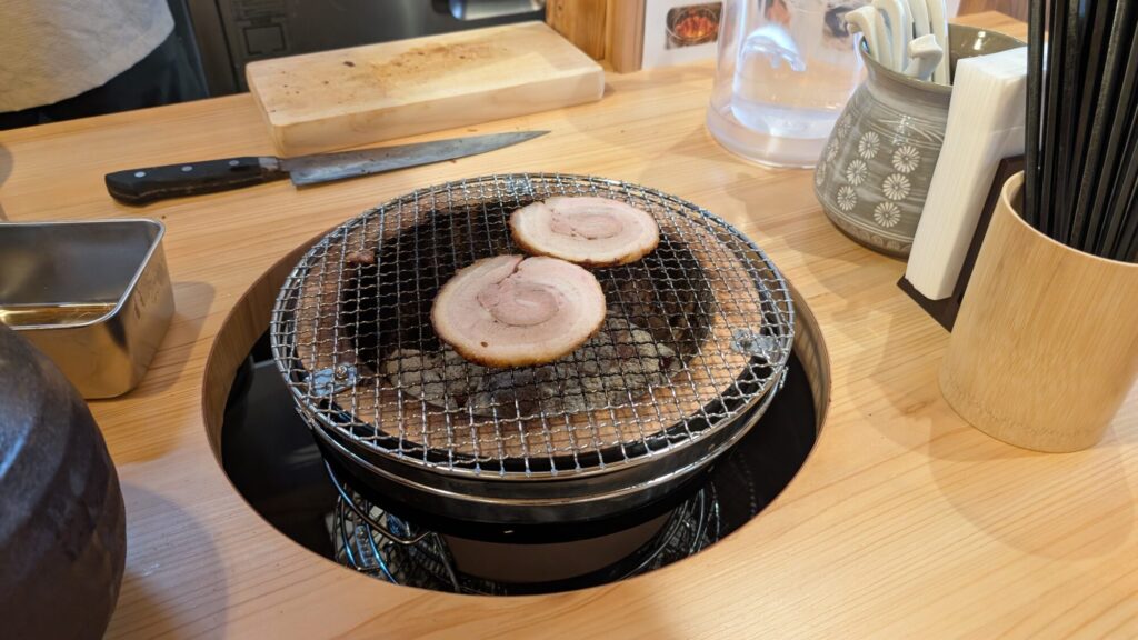 提供直前に炭火で炙ってから提供される自家製チャーシュー